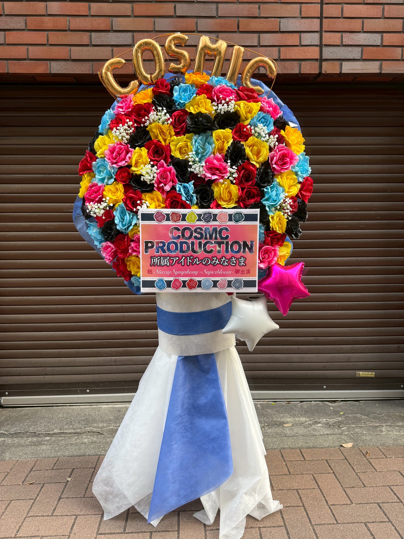 Starry Symphony - Superbloom- のタイトルにぴったりの、色鮮やかな花々とバルーンが咲き誇る華やかなフラスタ。