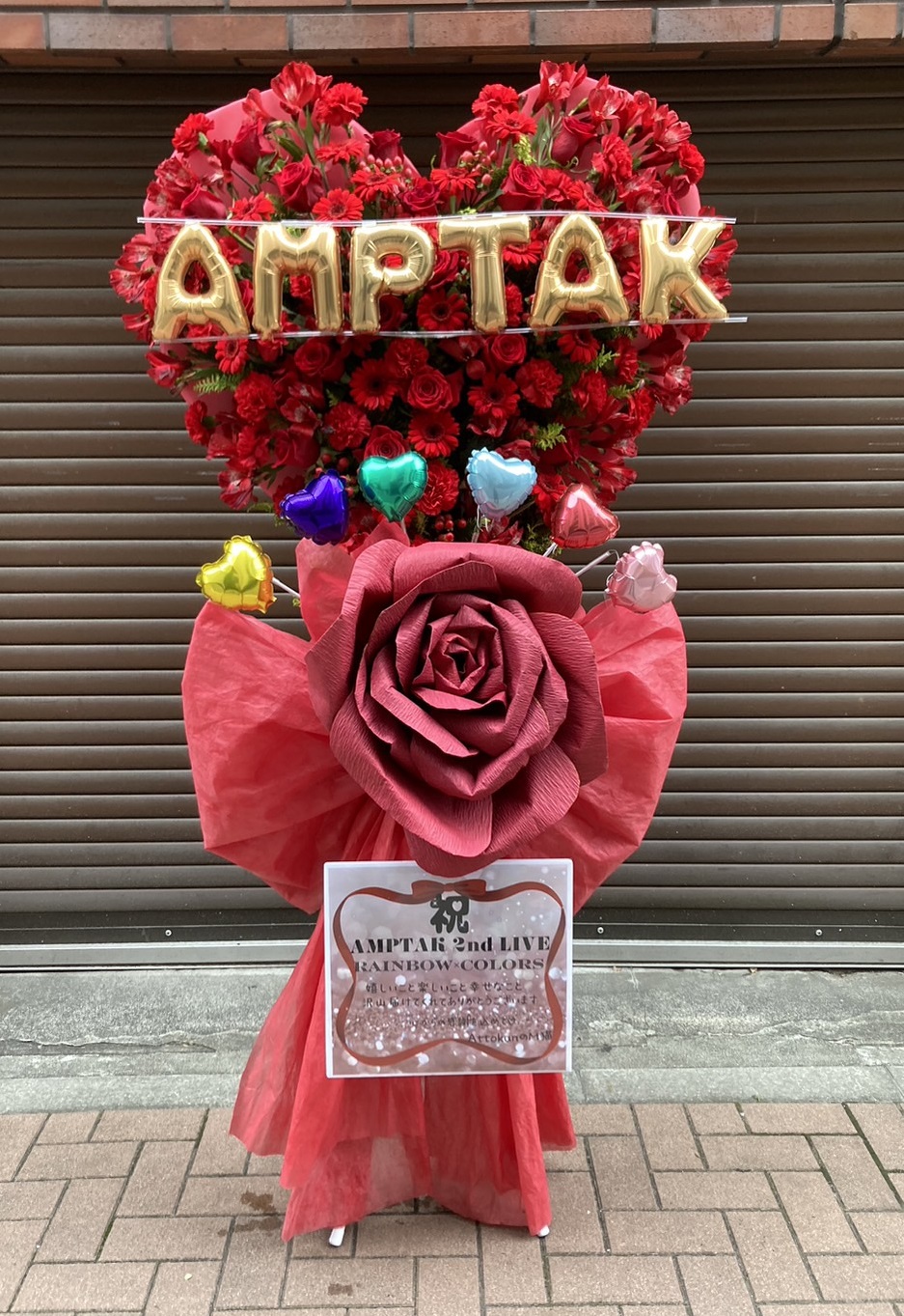 情熱的な赤を基調とした、ハート型が目を引く豪華なフラスタ。AMPTAKへの熱い応援が伝わる華やかなデザインです。