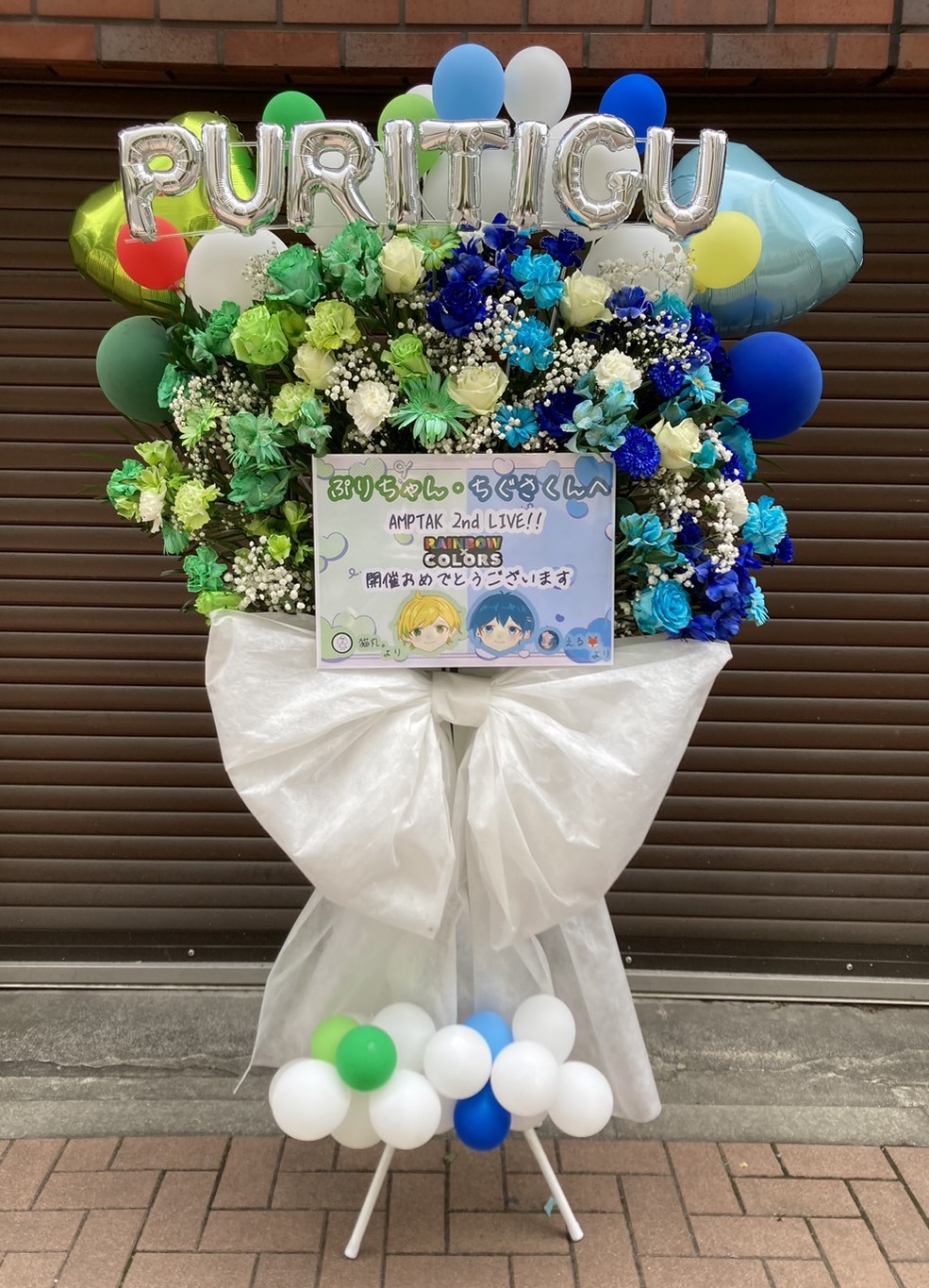 『AMPTAK 2nd LIVE!!』開催おめでとう!緑と青の生花とバルーンが涼しげで華やかなフラスタ。ぶりちゃん・ちぐさくんへの愛が伝わります。