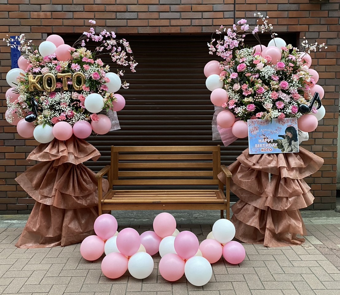 桜木こと様の生誕祭フラスタ!ピンクと白の生花とバルーンで華やかで可愛らしい雰囲気に。たくさんのバルーンがお祝いムードを高めます。
