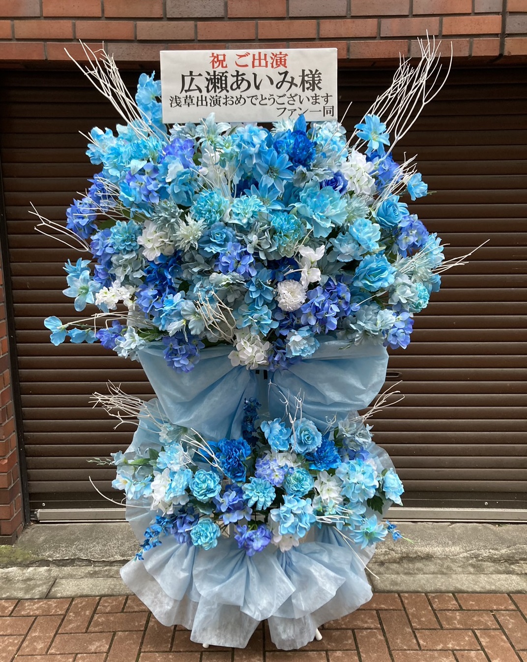 青と白のグラデーションが美しいフラワースタンド。涼やかでエレガントな雰囲気が、ご出演を華やかに彩ります。