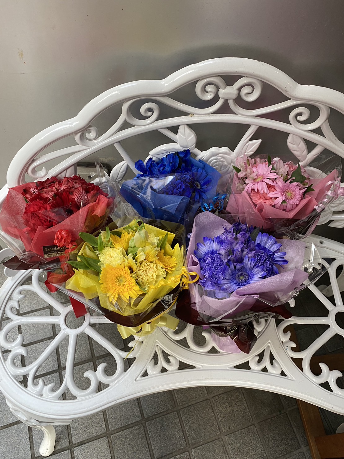 elsyツアーファイナル&4周年ライブへお届け。赤・青・黄・ピンクなどカラフルな生花ブーケが並び、華やかでお祝いムード満点です。